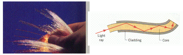 หลักการนี้สามารถนำไปประยุกต์ทำเป็นใยแก้วนำแสงได้ โดยสร้างใยแก้วเป็นสองชั้นทีมีดัชนีหักเหแสงต่างกัน ชั้นในเป็นส่วนที่ให้แสงเดินทางเข้ามา จึงมีดัชนีหักเหแสงสูง ส่วนชั้นนอกมีหน้าที่สะท้อนแสงกลับ จึงมีดัชนีหักเหแสงต่ำ แสงที่ถูกส่งเข้ามาจะเกิดการสะท้อนกลับหมดที่ขอบเขตกั้นระหว่างส่วนชั้นในกับชั้นนอก ดังนั้นแสงจะสามารถถูกส่งไปมาตามชั้นในของเส้นใยได้